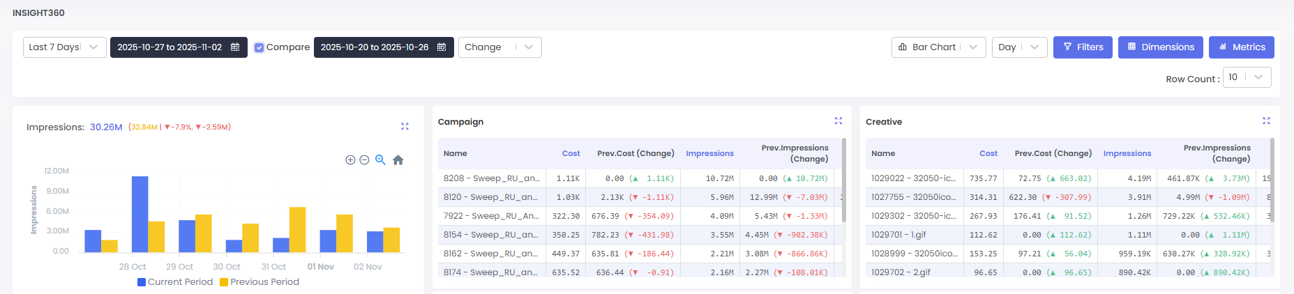 You can now toggle between your existing Dashboard and Insight360 to access a richer, more flexible view of your campaign performance. Just click on your credentials at the top right corner of your account and select the option.