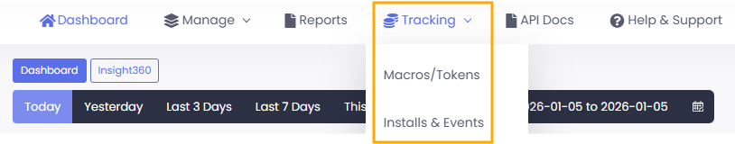 Configure and manage your S2S postbacks by clicking on the Tracking tab and selecting Installs & Events: